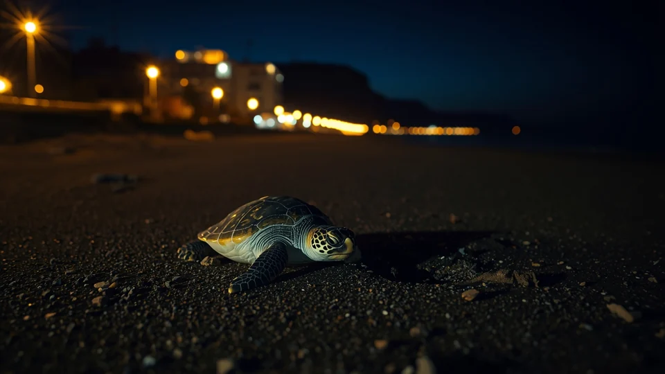 Veštačka osvetljenost obalnih zona fundamentalno narušava oba procesa. Ženke koje dolaze da položu jaja izbegavaju osvetljene plaže — što smanjuje broj gnezdišnih mesta dostupnih već ugroženoj populaciji. Mlada koja se izlegu orijentišu se prema najmanjem izvoru svetlosti, koji bi u prirodi uvek bio mora. Na osvetljenim plažama, ulična rasveta, hoteli i parkiranje privlače mlade u unutrašnjost — daleko od mora, prema asfaltu i zidovima gde uginu od dehidracije ili stradaju od vozila.